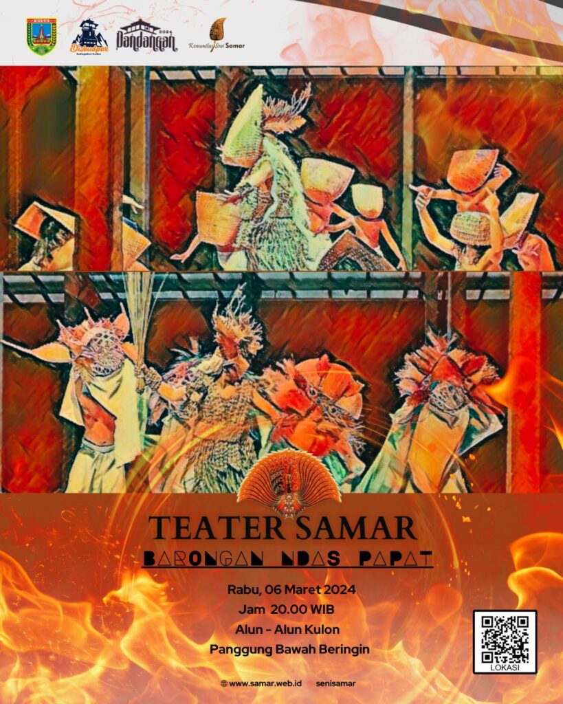 Pementasan lakon Barongan Ndas Papat menggunakan set panggung non permanen tanpa dekorasi ataupun penataan yang rumit. Set panggung yang sederhana dan properti buatan tangan sendiri oleh Komunitas Seni Samar untuk melengkapi kebutuhan pementasan. Hal ini dilakukan dengan tujuan memfokuskan perhatian penonton kepada gerak tubuh pemain dibandingkan properti panggung.