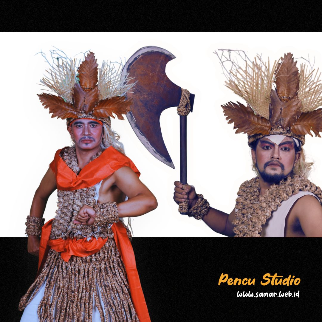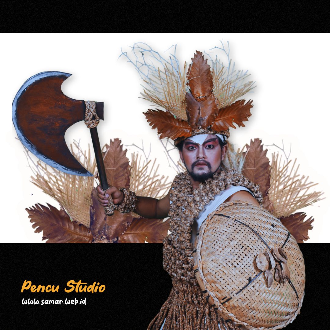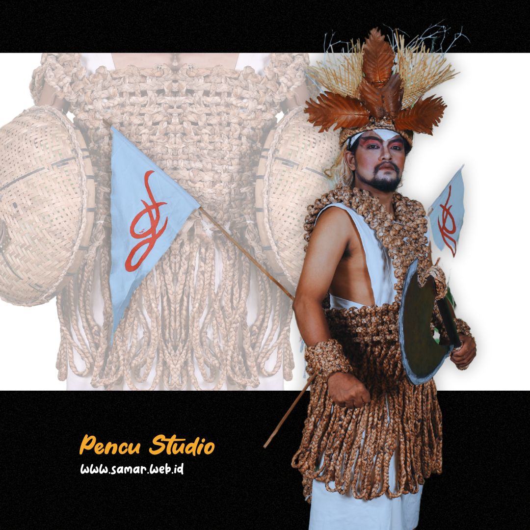 Kostum Baju zirah eceng gondok dan gelang tempurung kelapa
